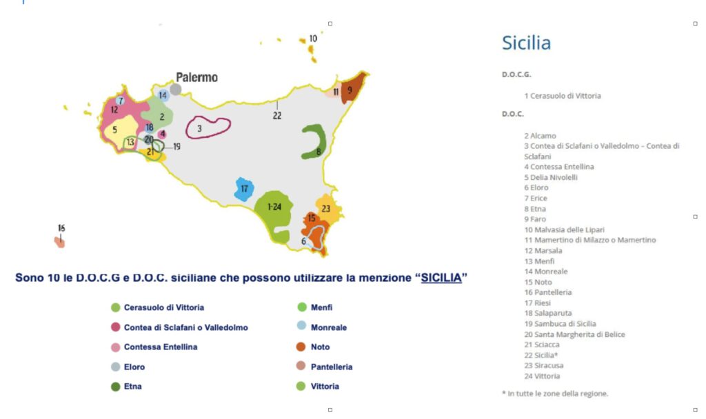 Die kontrollierte Ursprungsbezeichnung Sicilia DOC wurde 2011 eingeführt. 2012 gründeten rund 3.000 Weinbauern, Weinbereiter und Abfüller das „Consorzio di Tutela Vini DOC Sicilia“, das vom Landwirtschaftsministerium offiziell anerkannt ist. Das Konsortium schützt und fördert die Marke Sicilia DOC, kontrolliert die Einhaltung der Produktionsrichtlinien, informiert Verbraucher und plant die Markteinführung der Weine, um die Entwicklung des sizilianischen Weinbaus zu stärken.