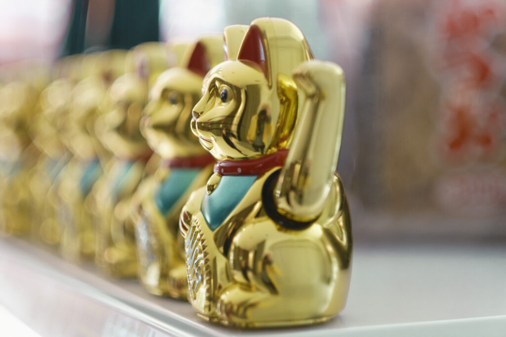 Godzilla lauert zwischen grünen Wasabi-Snacks und bunten Crunch’iz Loops ’N Hoops. Überall winken uns goldene Glückskatzen ausgelassen zu.